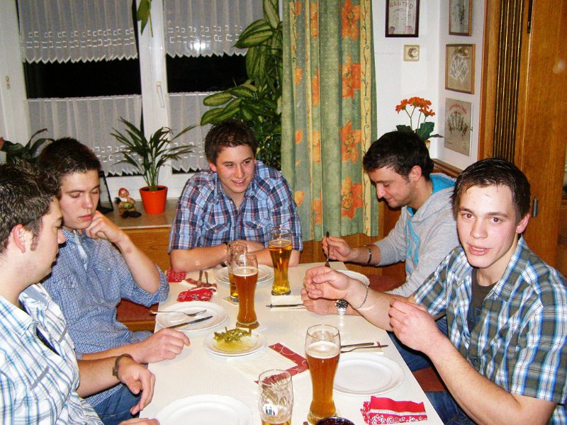 Die "Waldthurner Ecke" mit Neumitglied Georg Stahl (2. von rechts) wartet auf das Essen.