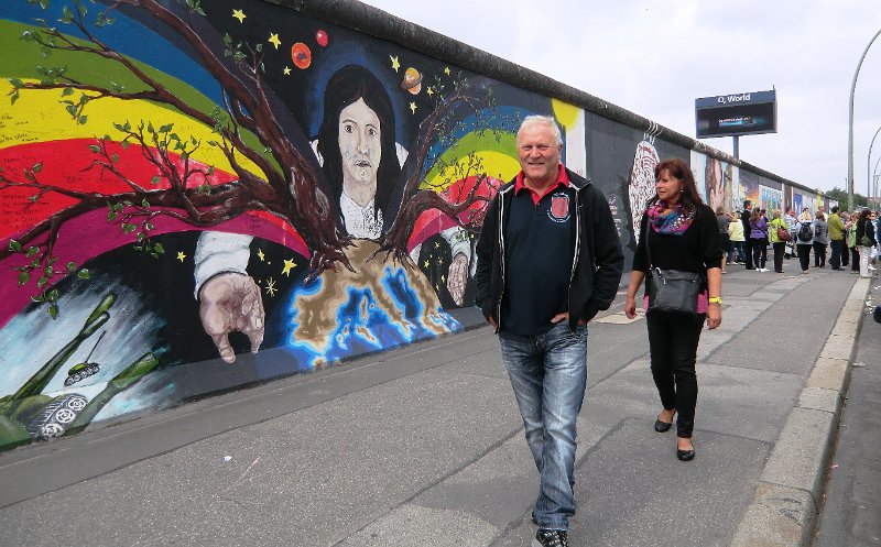 Lorenz und Andrea bewunderen die Malereien an der Mauer.