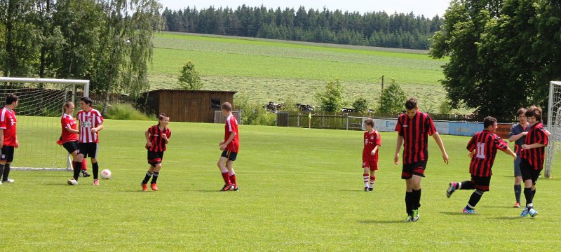 Von Anfang an machte der Schalob viel Druck nach vorne, hier erzielte Dennis (rechts im Bild) das erste Tor im ersten Spiel gegen die Junioren der FC-Bayern-Fans.