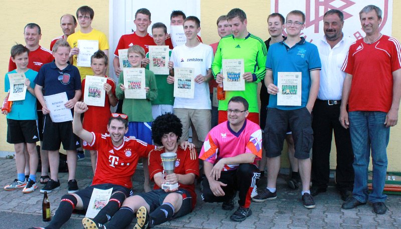 Gruppenbild mit Siegern: den Wanderpokal des Turniergewinners hält "Dante" Florian Scheck in den Händen.
