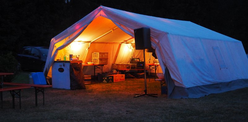 Unser Versorgungszelt mit Schankanlage und Musik-Center.