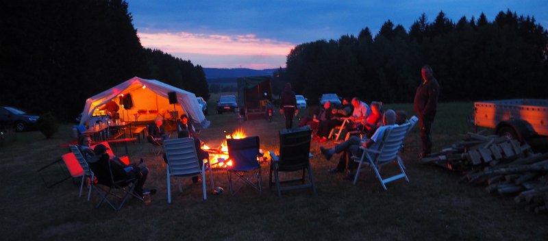 Lagerfeuerromantik in der hereinbrechenden Nacht.
