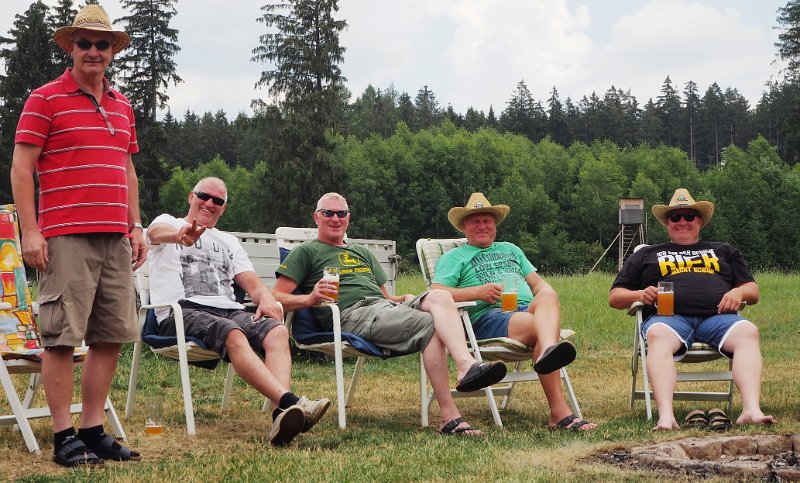 Auch die noch immer sitzenden Frühschoppengenießer gratulieren dem Georg, der hat prompt noch ein Bier ausgegeben.