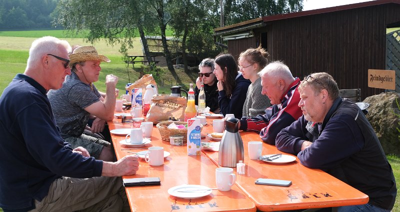 Frühstück am Seer-Weiher bei strahlenden Sonnenschein.