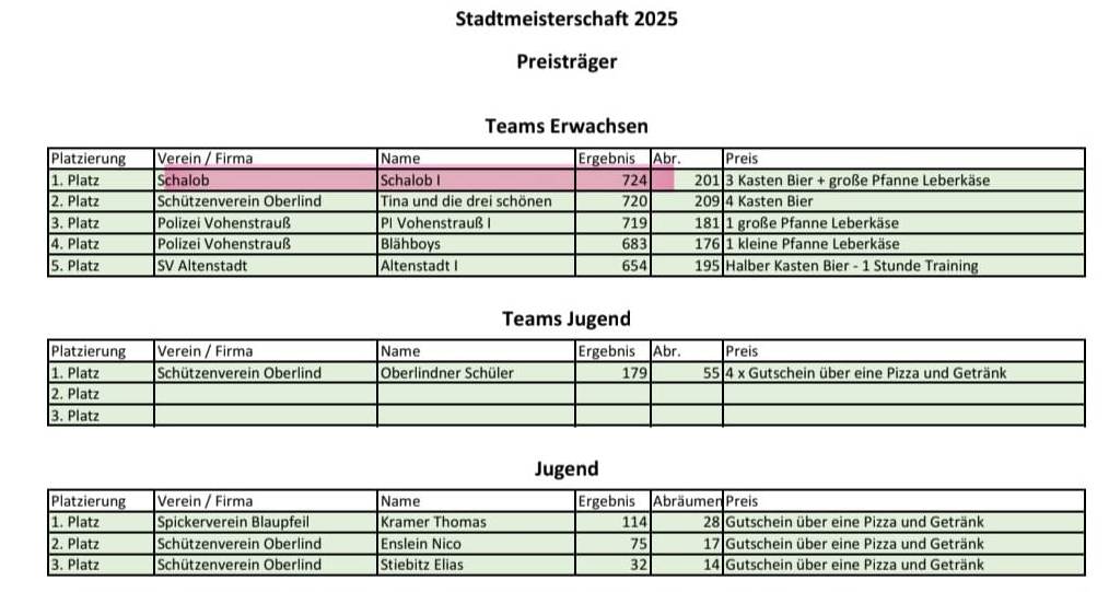 Blaupfeil) mit 179 Holz. Die meisten Mannschaften stellte der Vohenstraußer
