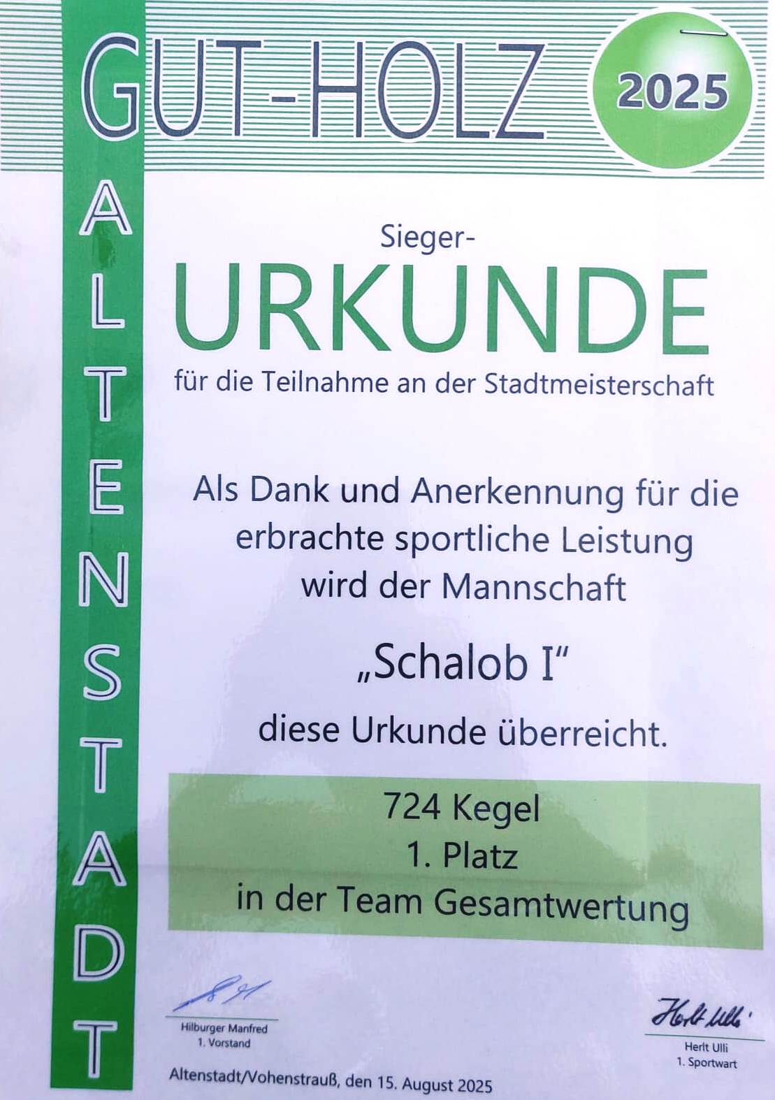 machte die Schalob-Mannschaft 1 mit 724 Holz das Rennen, gefolgt von Schalob 4