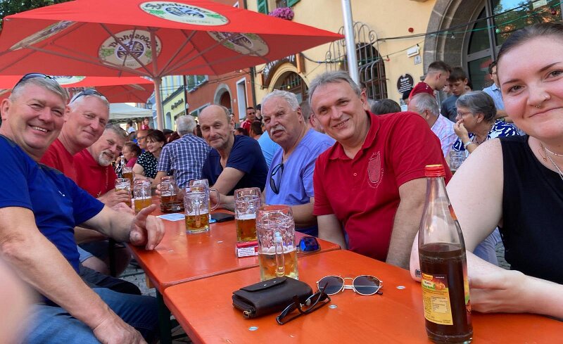 Die Heimfahrt ist geschafft, in Vohenstrauß genießt man beim Altstadtfest noch einen kühlen Trunk.